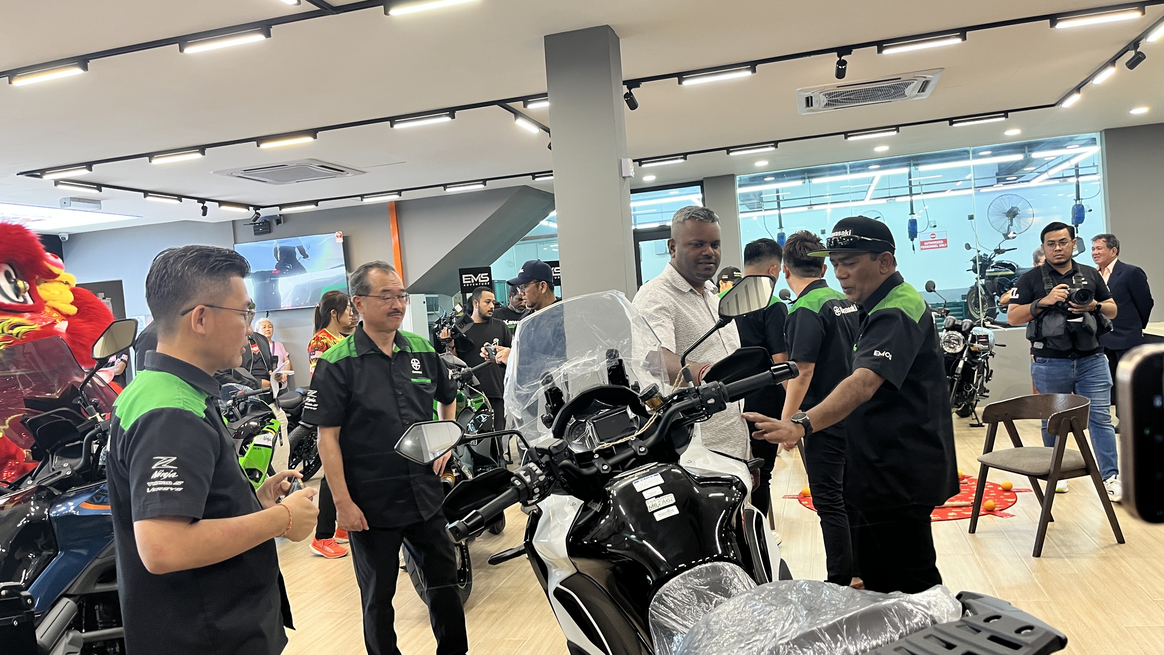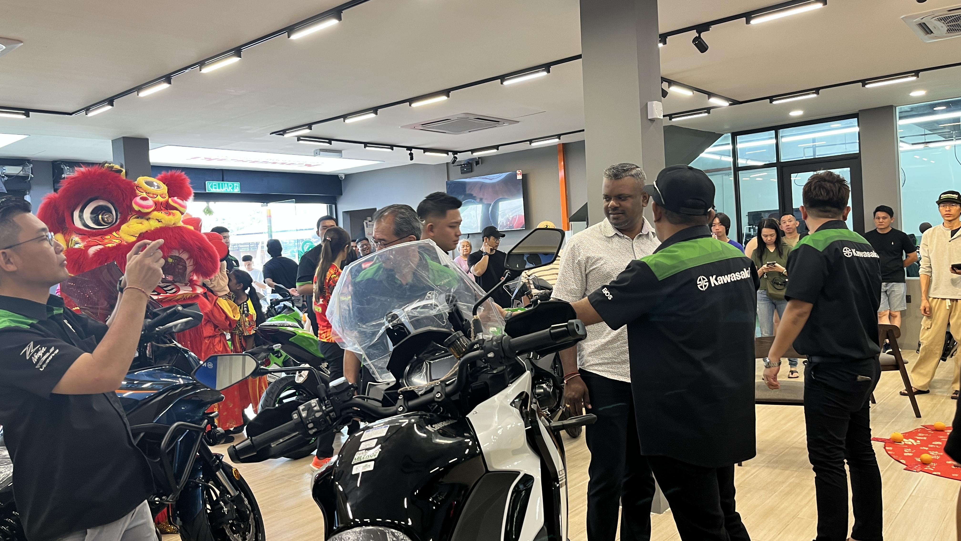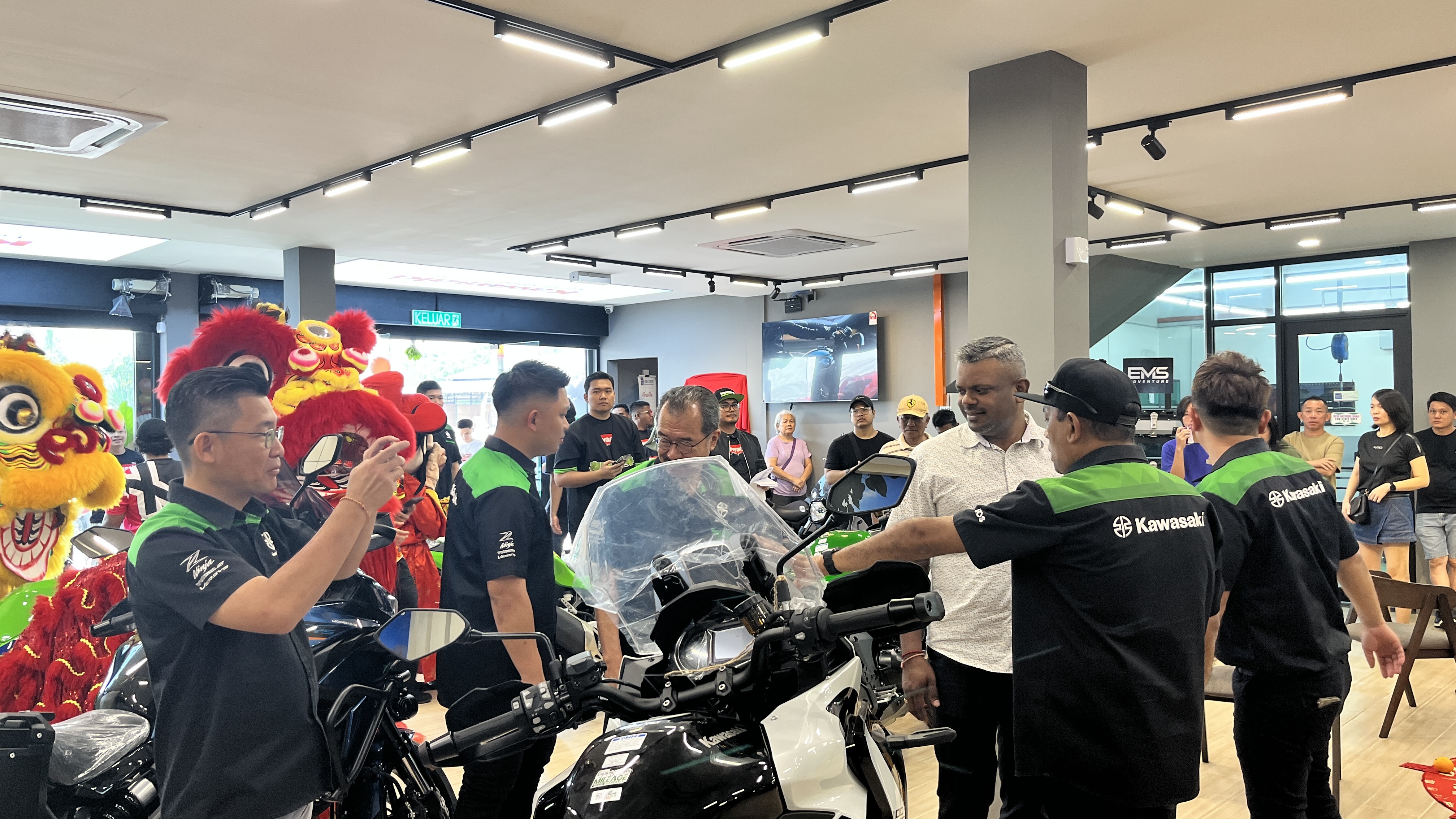 The opening was officiated by YB Arulkumar A/L Jambunanthan, State Assemblyman of Nilai. The opening ceremony also included a lion dance performance, plaque signing, showroom tours, and a luncheon for over 500 guests. A special Lucky Draw added excitement with prizes including a MODENAS MR3 motorcycle, LS2 helmets, jackets, and exclusive Kawasaki merchandise.